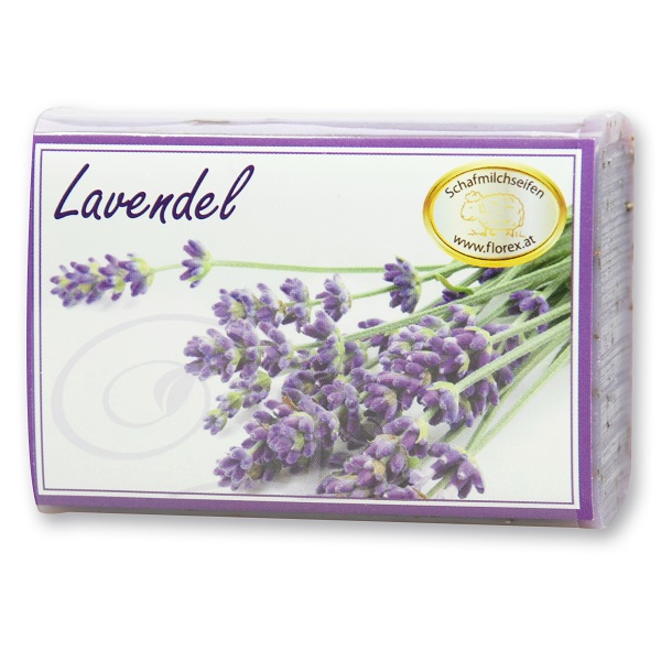 Schafmilchseife eckig Lavendel verpackt mit Karterl + Cello